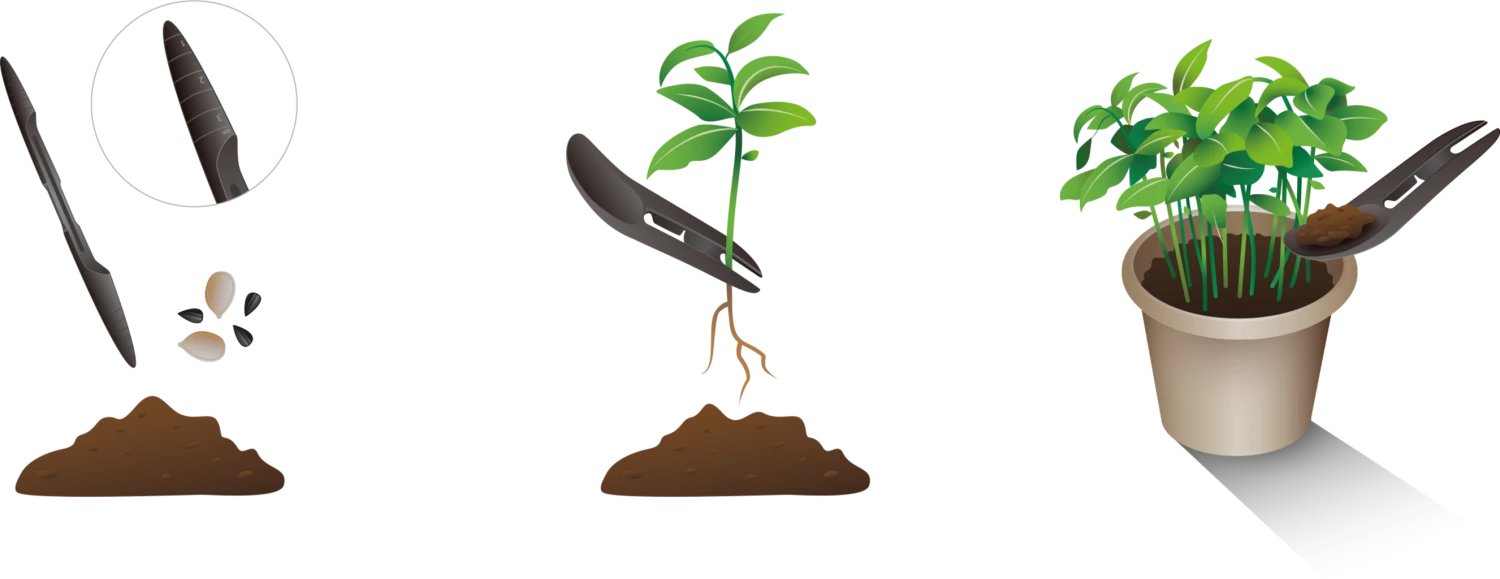 Der Pikierstab besitzt zwei unterschiedliche Enden – optimal für verschiedene Anwendungen – inklusive Zentimeterangabe.