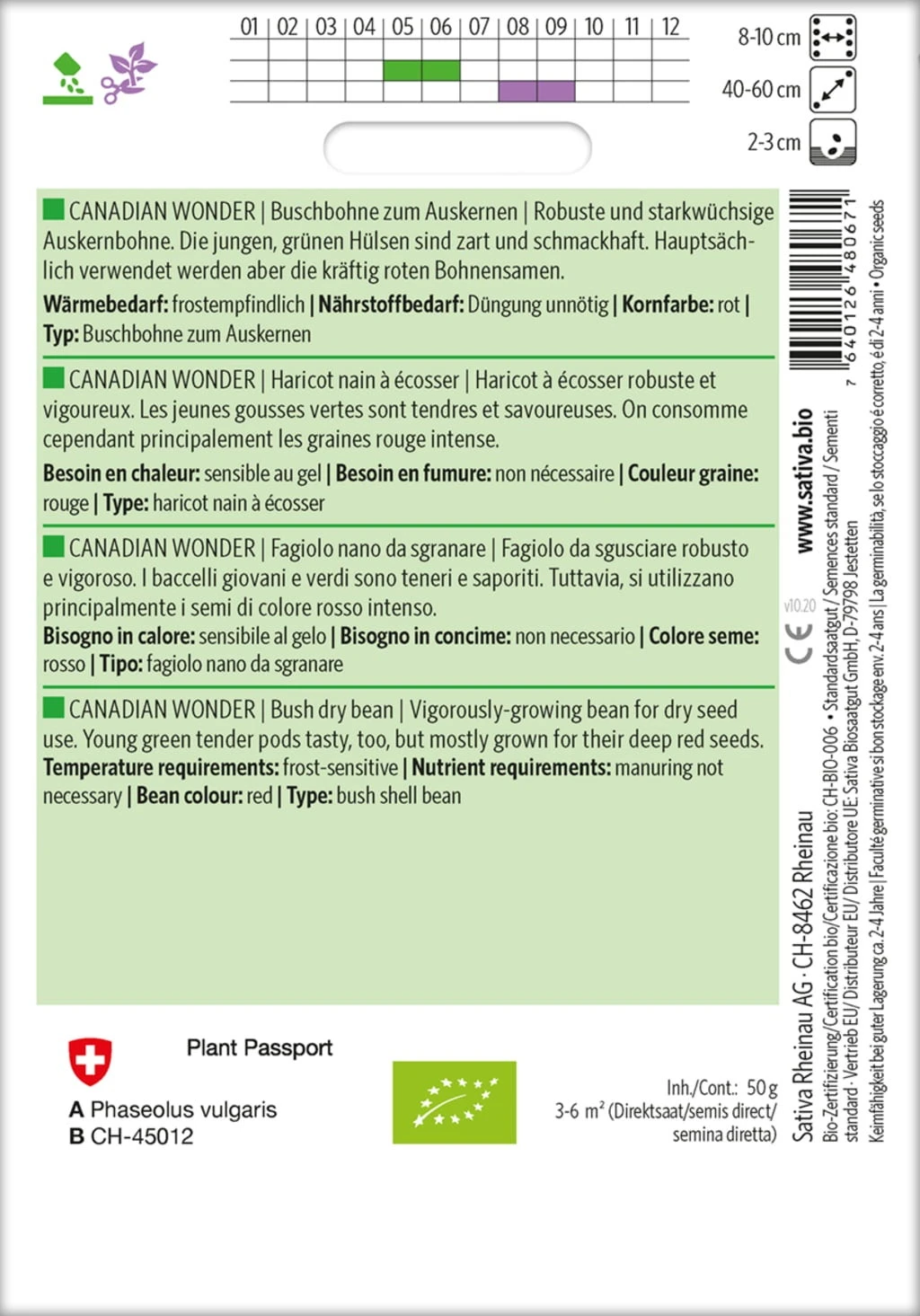Diese robuste und starkwüchsige Auskernbohne bildet grüne Hülsen, die jung zart und schmackhaft sind. Sie wird jedoch hauptsächlich wegen ihrer kräftig roten Bohnensamen angebaut.