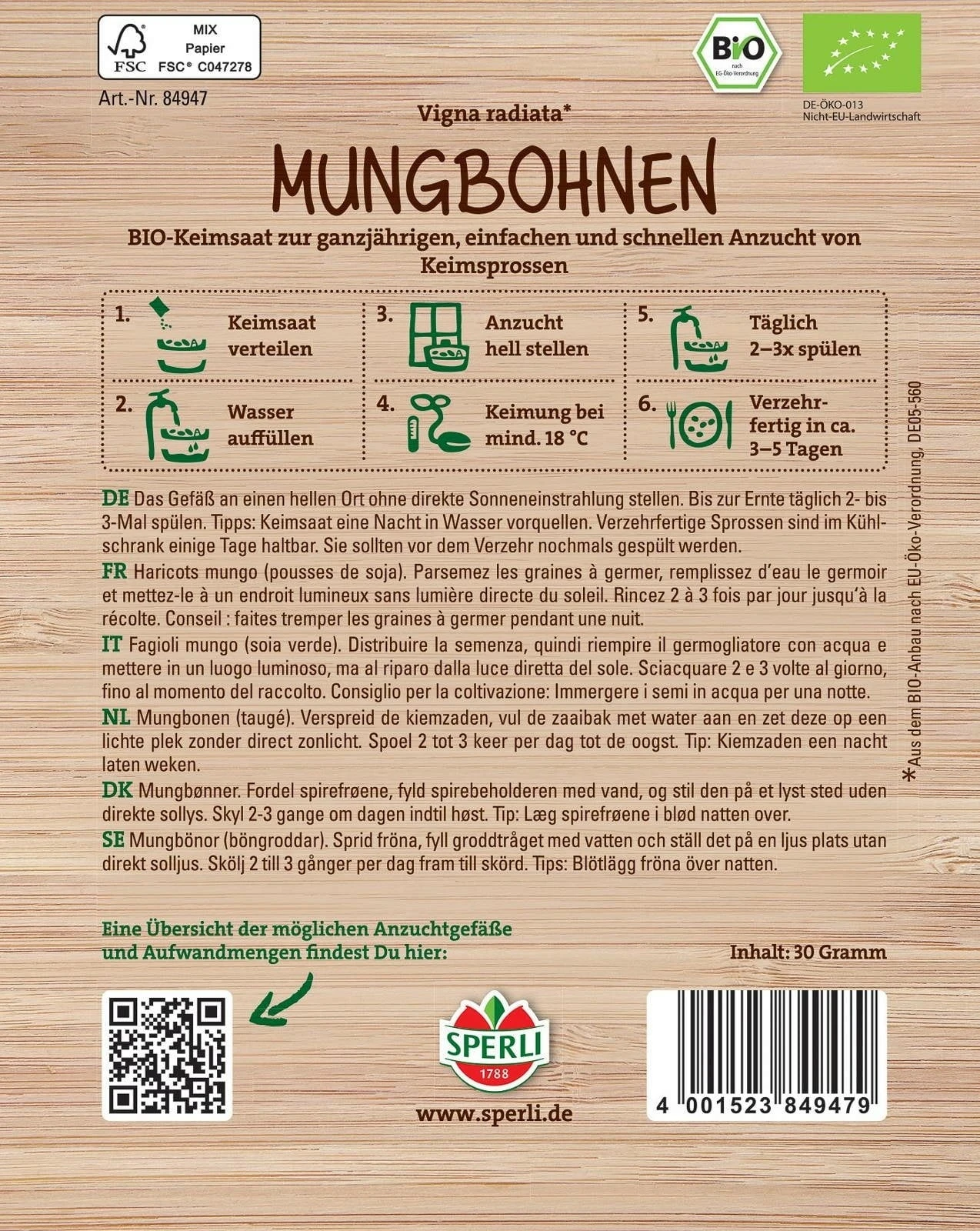 Bio Keimsprossen Mungbohnen, 30 G -Garten Flaire Verkaufsgeschäft sperli bio keimsprossen mungobohnen 30 g 1116885 de