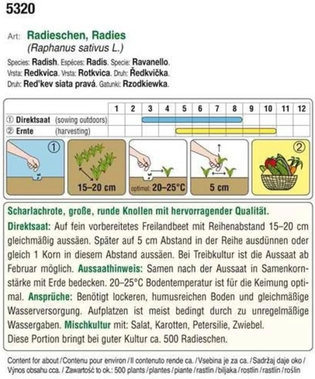| Aussaattermin: | März, April, Mai, Juni, Juli, August |