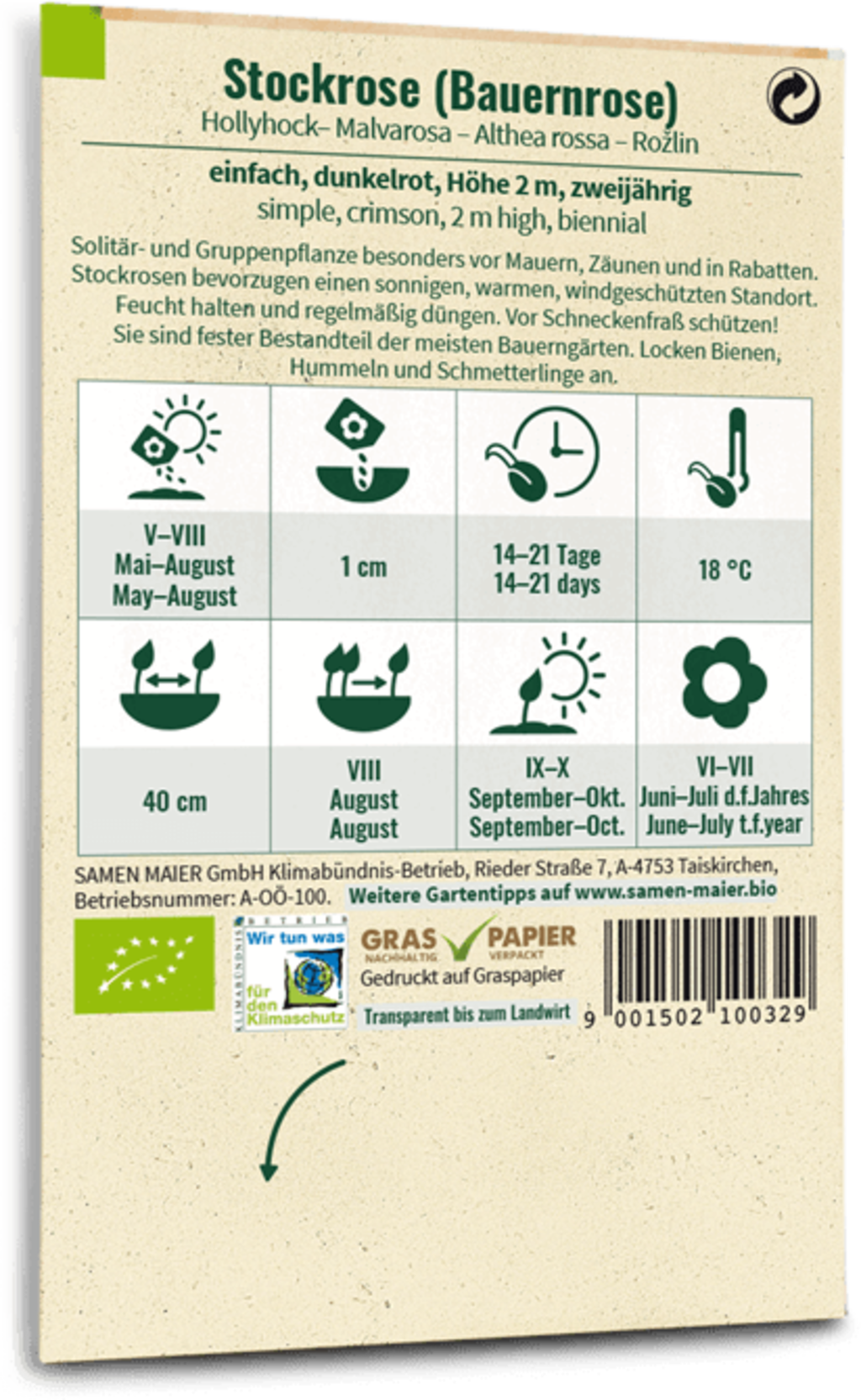 | Aussaattermin: | Mai, Juni, Juli, August |