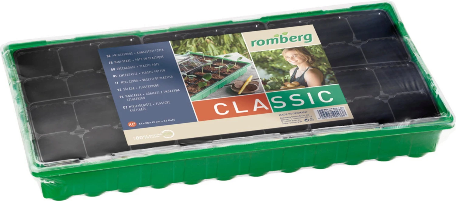 Das Anzuchthaus XL Plus von Romberg eignet sich perfekt für Kräuter, Blumen und Gemüse. Perfekt in Kombination mit Romberg Kokos-Quelltabletten. Das Format ist ideal für die Fensterbank.