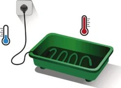 Da das Heizkabel wasserabweisend, schutzisoliert und säurebeständig ist, eignet es sich sowohl für den Einsatz im Zimmergewächshaus als auch im Terrarium. Das Heizkabel gibt konstant Wärme ab, daher solltest du die Innentemperatur regelmäßig kontrollieren. Zur Regulierung der Temperatur kannst du den Schieberegler benutzen, die Abdeckhaube kurz abnehmen oder aber eine Zeitschaltuhr verwenden.