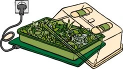 - Die Heizmatte wird unter das Gewächshaus gelegt. Sie sorgt bei normaler Zimmertemperatur für eine gleichmäßige Temperaturverteilung von 22 – 25 ° C (nicht im kalten Keller oder Außengewächshaus!). Die Heizmatte ist nicht dafür ausgelegt, extreme Temperaturunterschiede auszugleichen. Die Innentemperatur des Anzuchthauses wird von der Umgebungstemperatur beeinflußt. Das Anzuchthaus mit Heizmatte sollte möglichst an einem hellen Standort – z.B. auf einer Fensterbank – aufgestellt werden, da das Pflanzenwachstum auch durch den Faktor Licht