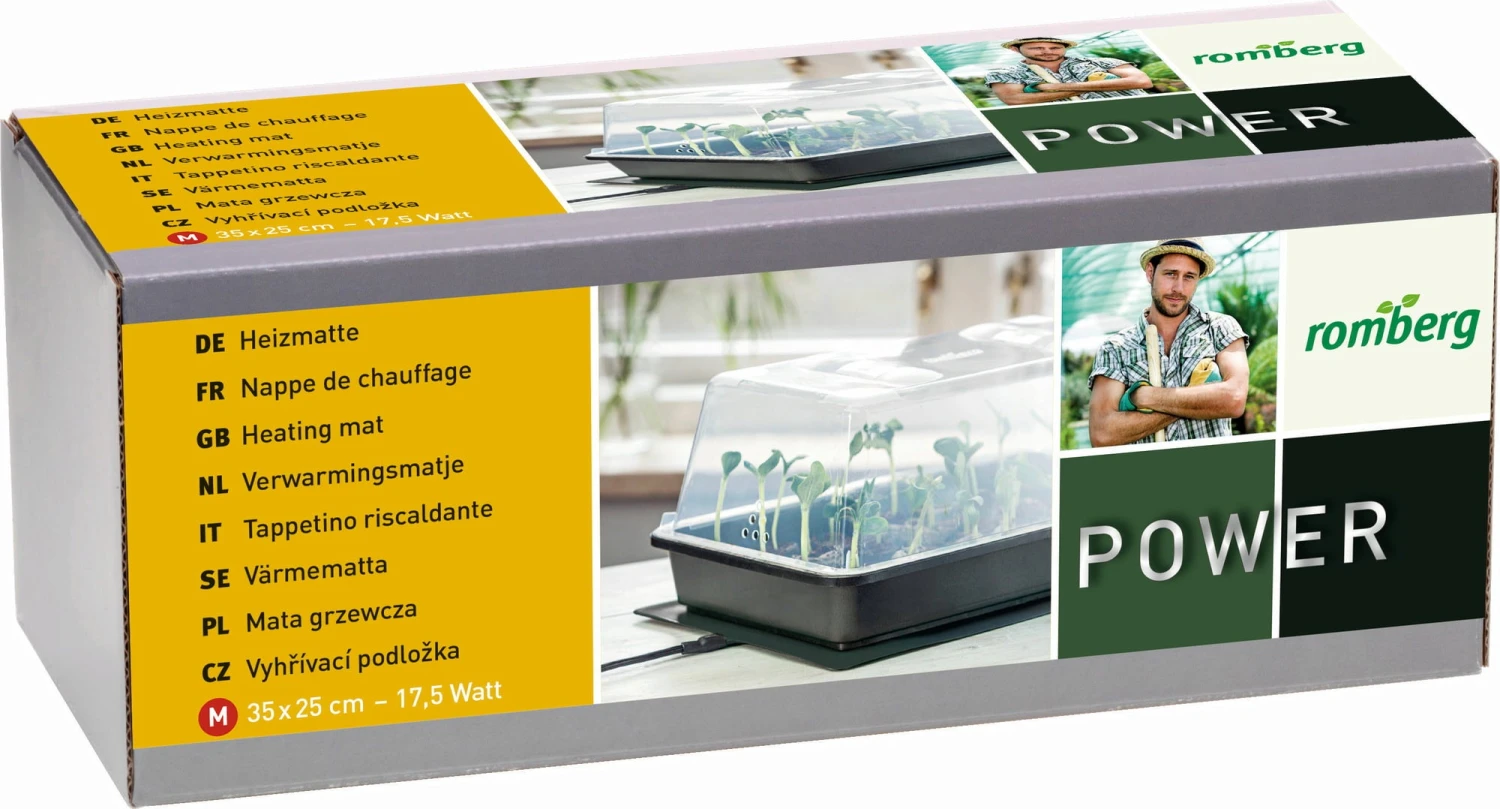 Die Heizmatte von Romberg bietet in Verbindung mit den Romberg Gewächshäusern eine ideale Voraussetzung für eine erfolgreiche Anzucht. Ideal für wärmebedürftige Pflanzen. Die Kunststoffmatte ist schutzisoliert und säurebeständig. Das Produkt kann für Zimmergewächshäuser als auch für den Einsatz in Terrarien verwendet werden. Die Heizmatte sorgt für eine konstante Wärme, daher sollte die Innentemperatur im Gewächshaus regelmäßig kontrolliert werden. Eine Temperaturregelung kann durch kurzzeitiges Abnehmen der Haube erfolgen. Bei Bedarf kann sie auch mit Hilfe einer Zeitschaltuhr geregelt werden.