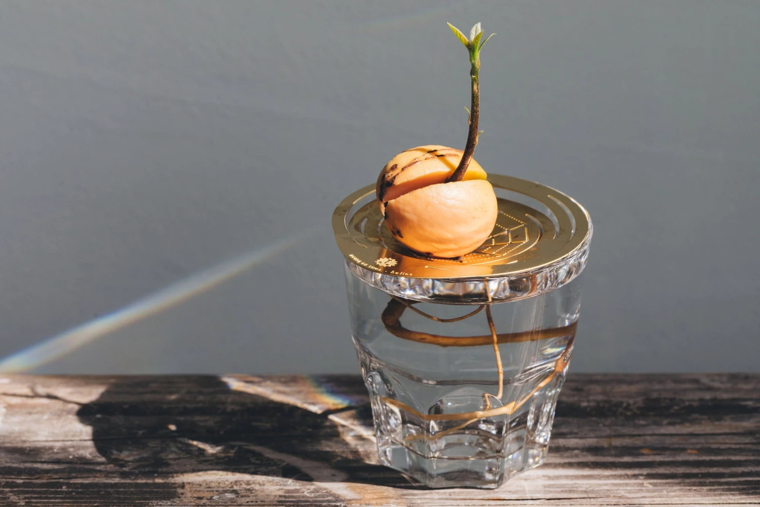 Platziere die Scheibe einfach auf einem passenden mit Wasser gefüllten Glas und staune, wie sich ein verzweigtes Wurzelsystem entwickelt.