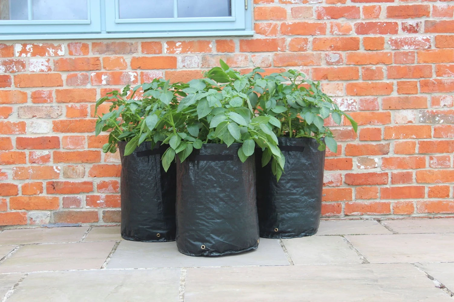 Ab sofort kann sich jeder köstliche, hausgemachte Kartoffeln wachsen lassen, auch wenn Sie keinen Garten besitzen. Die Kartoffelpflanztaschen sind speziell für den Einsatz auf Terrassen und Balkone konzipiert, fassen 40 Liter und eignen sich somit für 3 – 5 Pflanzkartoffeln. Das Material ist aus hartem, farbigen Polyethylen, besitzt verstärkte Ablauflöcher an der Basis und auf jeder Seite einen Griff.