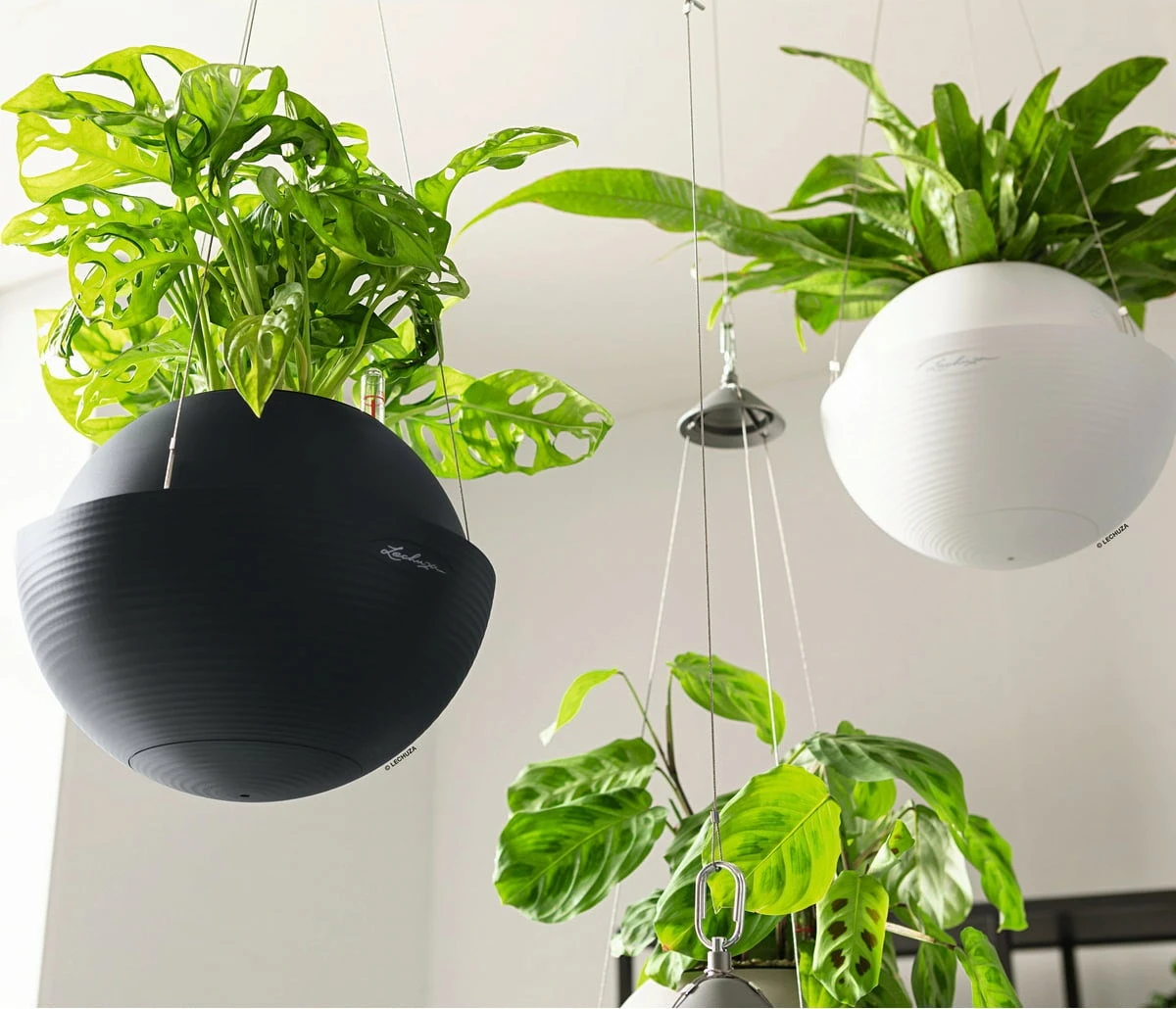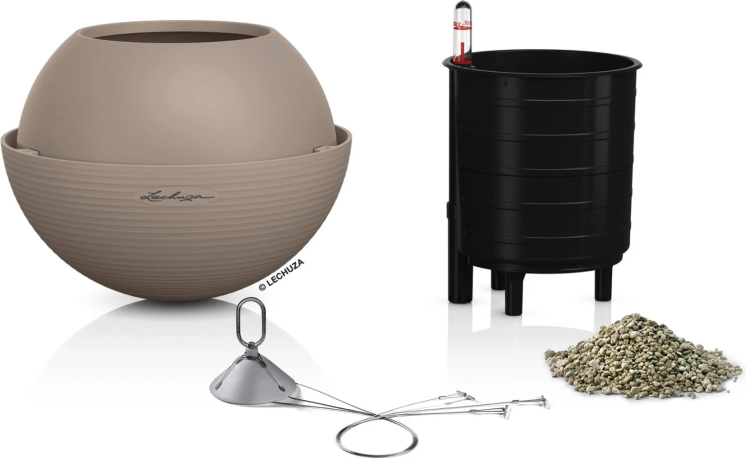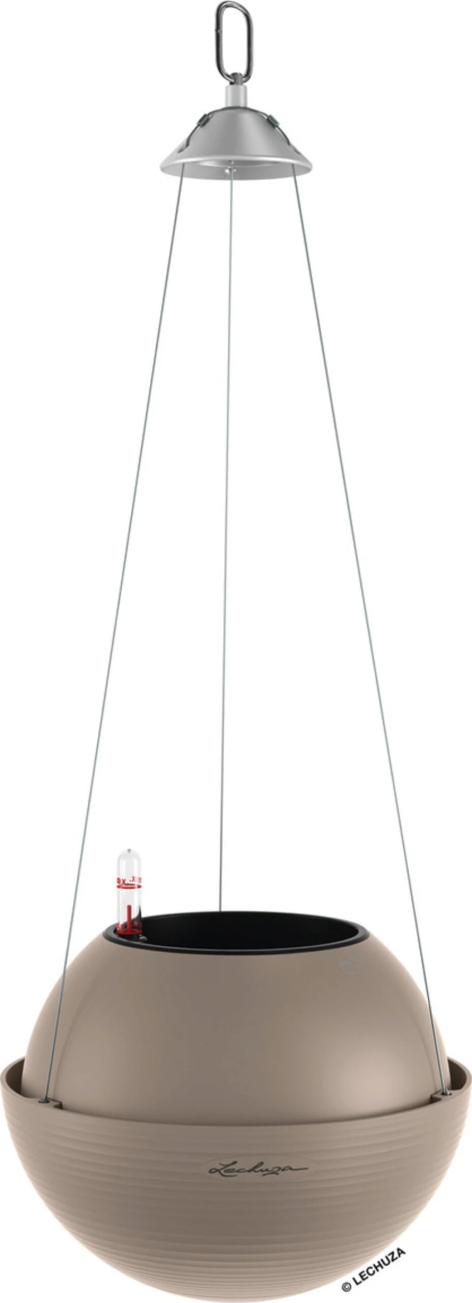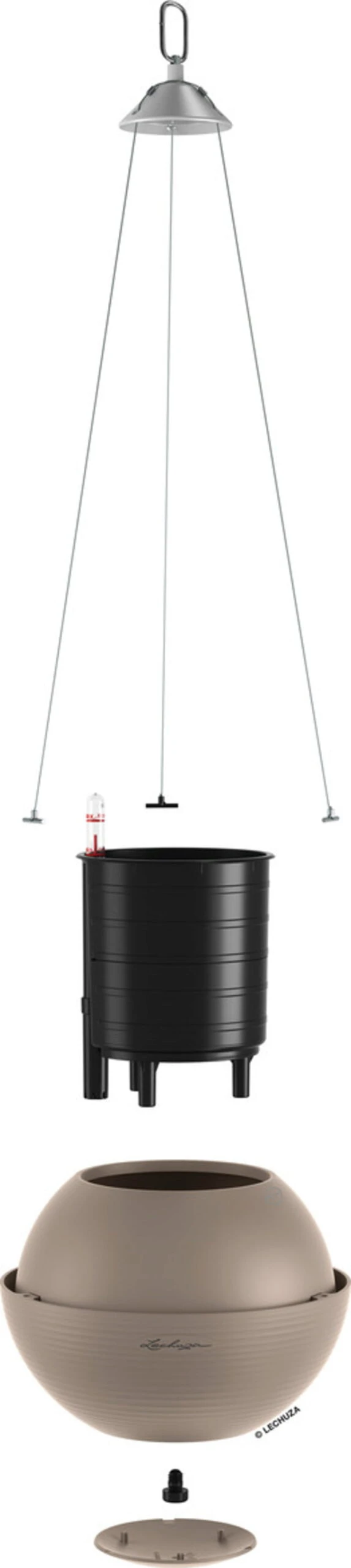 Lieferumfang: „All-in-One“-Set, bestehend aus Pflanzgefäß, herausnehmbarem Pflanzeinsatz, Lechuza-Bewässerungsset & Edelstahl-Aufhängung
