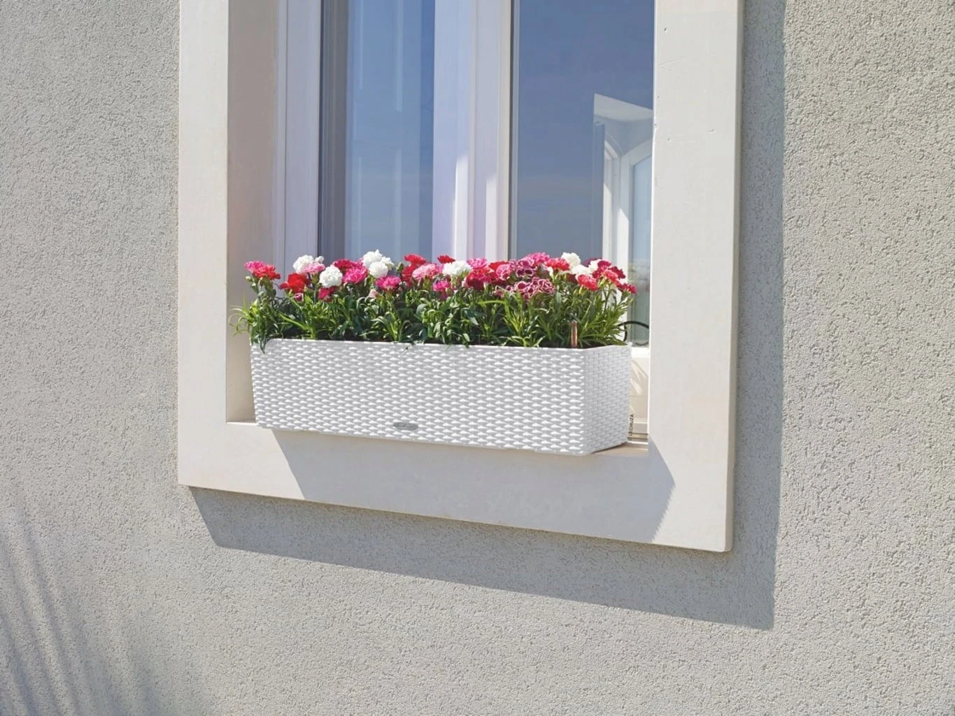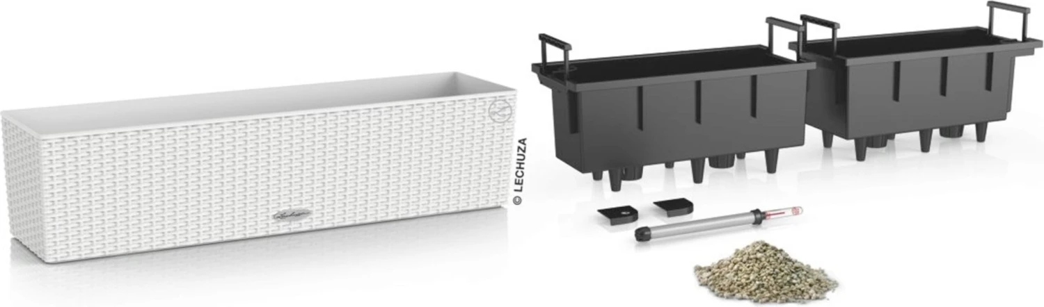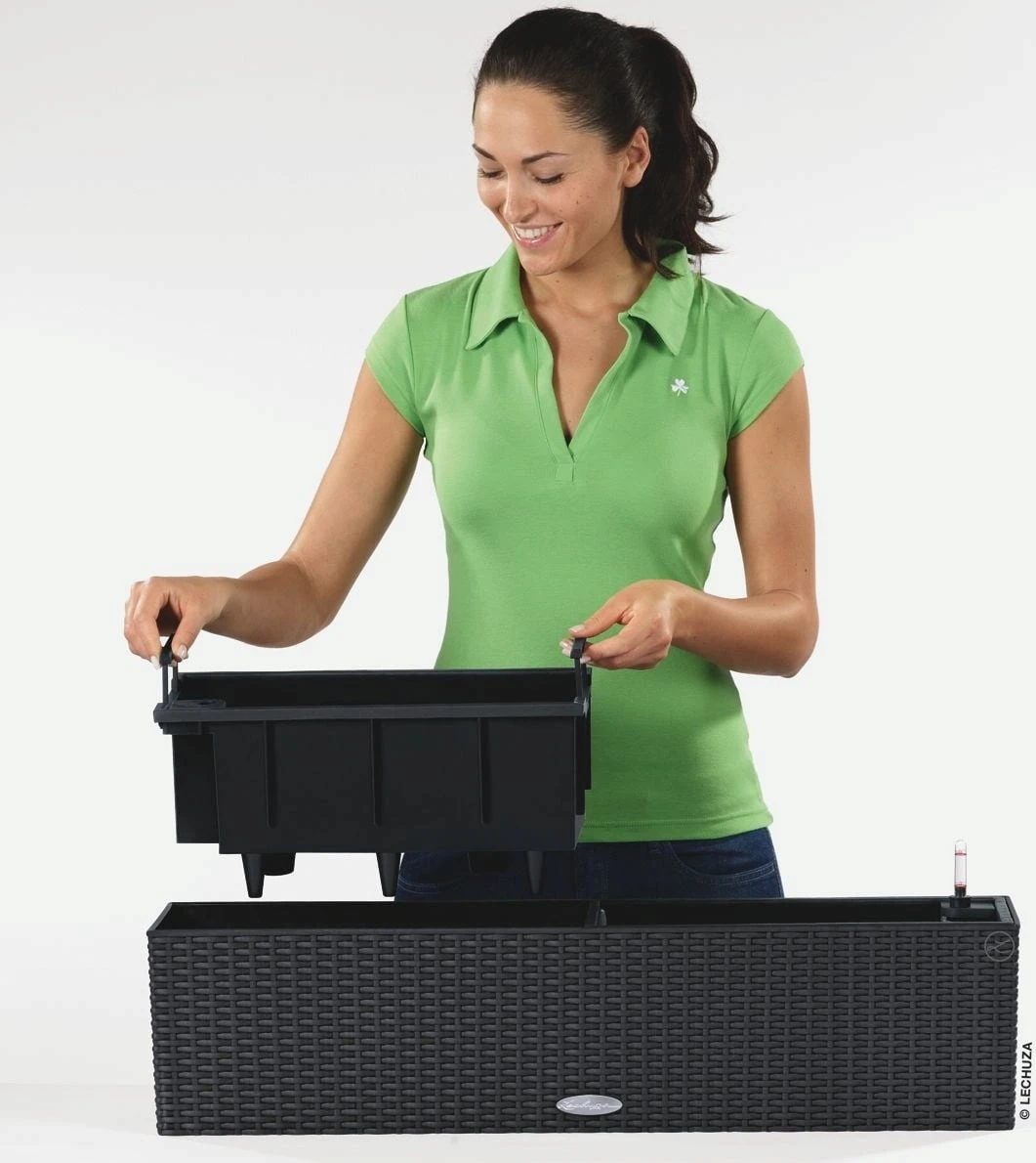 Der Balkonkasten BALCONERA von LECHUZA lässt auch bei größter Hitze die Pflanzen nicht hängen. Dank der großen Wasserreservoirs (5 Liter) erhalten sie ausreichend Flüssigkeit. Ganz einfach die Pflanzeinsätze auf dem Boden oder Tisch bepflanzen und danach in den Balkonkasten setzen. Außerdem überzeugt der Balconera Cottage 80 durch sein ansprechendes Design (reddot design award winner 2010).