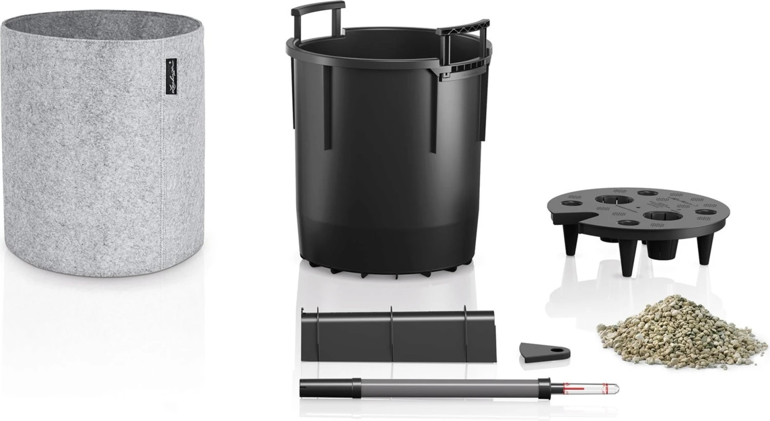 Die weichen Trendcover in attraktiver Filzoptik sorgen mit ihrer strukturierten Oberfläche für ein einzigartig gemütliches Wohngefühl und lassen sich flexibel kombinieren. Das Komplett-Set beinhaltet außerdem einen funktionalen Pflanzeinsatz mit cleverem Lechuza-Bewässerungssystem. Dank der praktischen Tragegriffe können die Cover einfach und unkompliziert gewechselt werden.