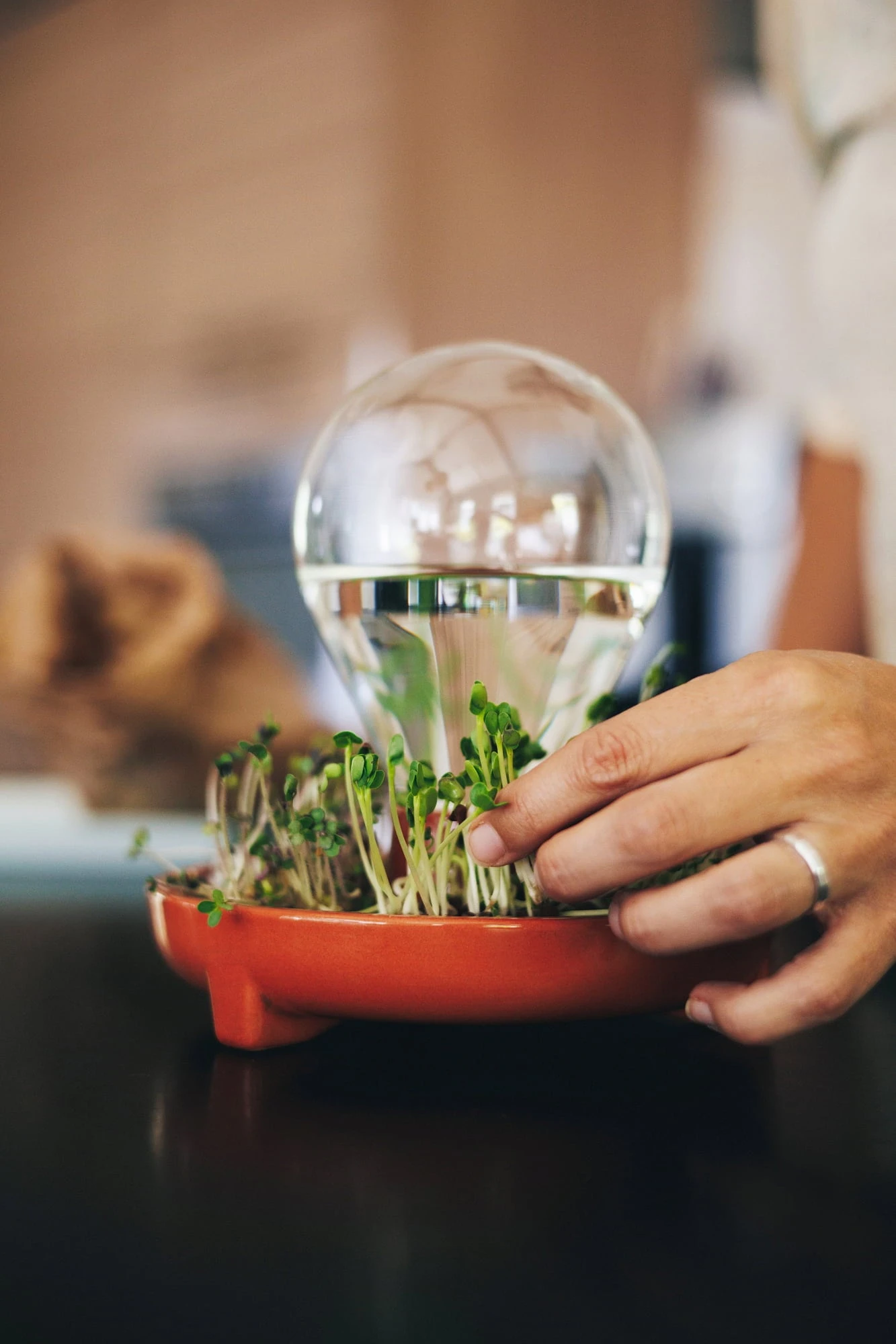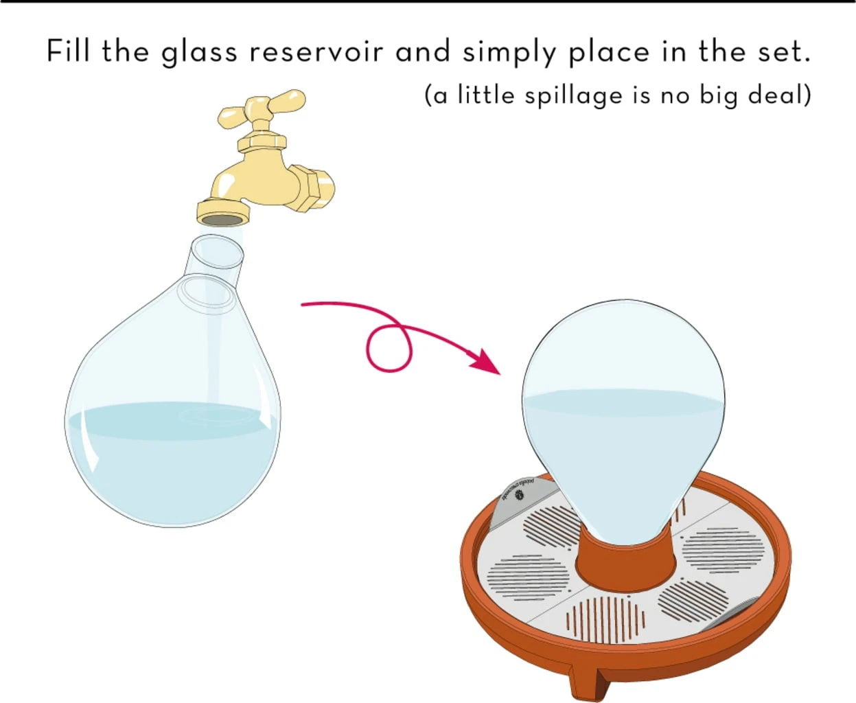 2. Befülle den Wassertank und platziere ihn in der Mitte der Keimschale