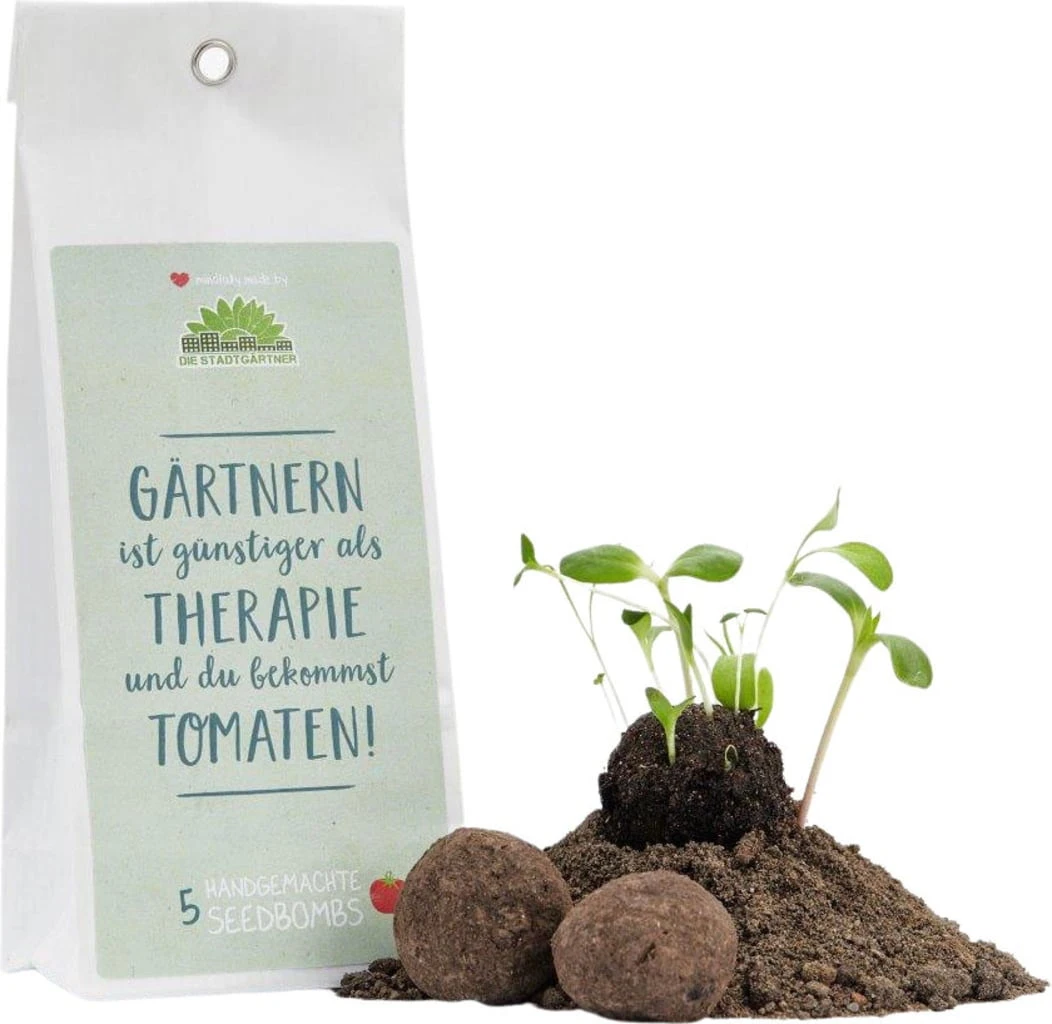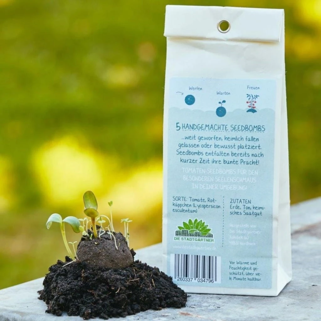 Inhalt: 5 handgemachte Samenbomben mit Tomatensamen der Sorte Rotkäppchen Lycopersicon esculentum)