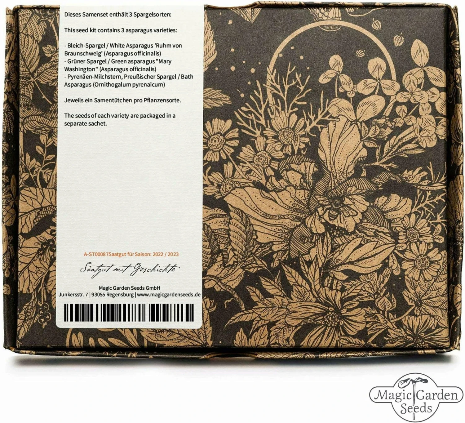 Im Set enthalten ist eine ausführliche Aussaat-Anleitung sowie drei alte Spargelsorten: